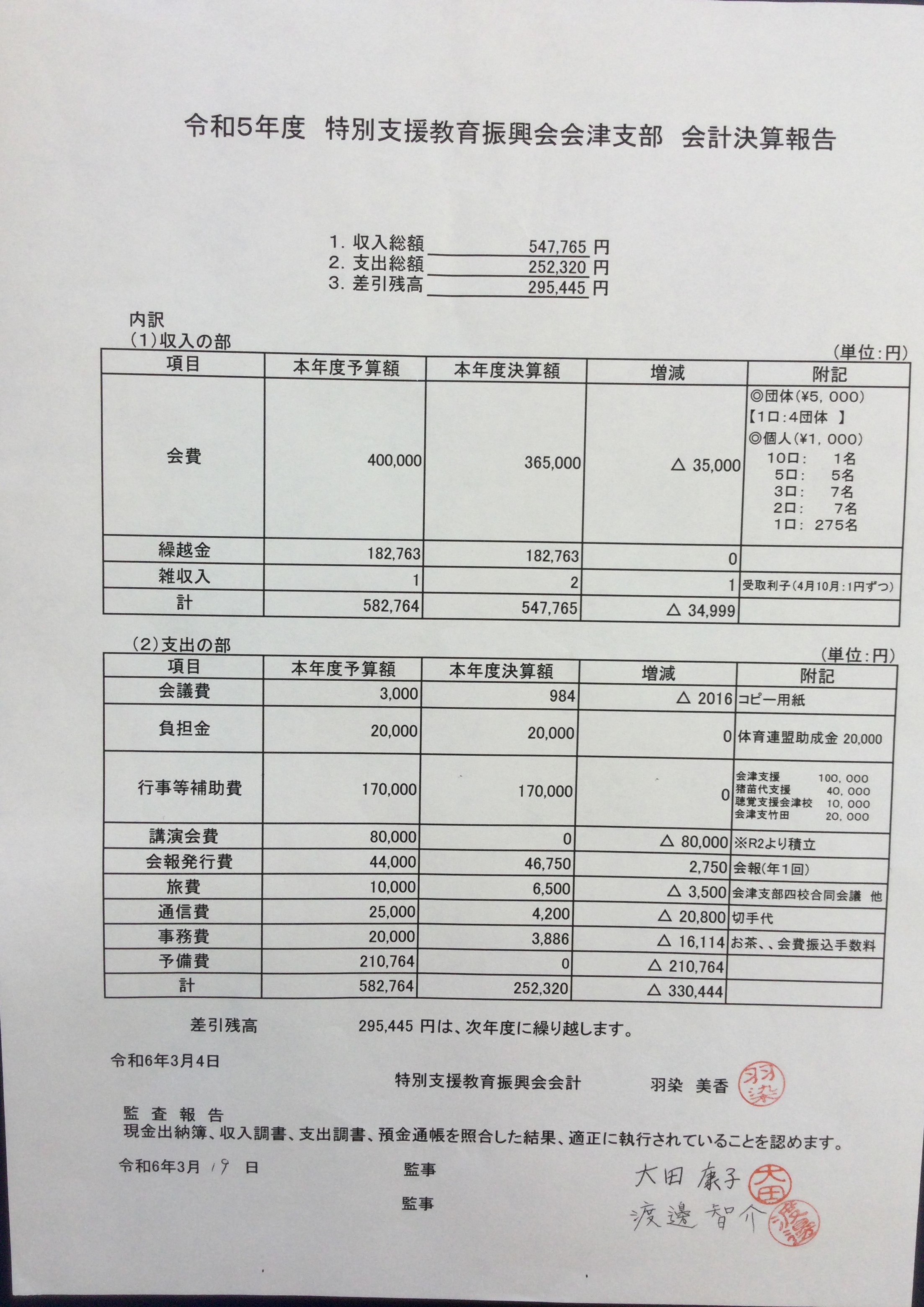 大変遅くなりましたが、令和5年度事業報告及び会計決算報告・令和6年度事業計画(案)及び予算(案)について下記の通り報告いたします。