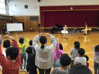 児童の中には、初めてバレエを見る児童、久しぶりに生の演奏を耳にする児童もおり、目を輝かせながら見たり、聴いたりしていました。また、「Tomorrow」の楽曲では、代表の児童2名が前に出て、せりふの掛け合いをしたあと、みんなで一緒に振付をしながら楽しく歌いました。一緒にバレエを踊ったり、様々な楽器の演奏をじっくりと聴いたりして素敵なひと時を過ごすことができました。最後には、「ブラボー!」の声が児童から上がり、アンコールにも応えていただきました。